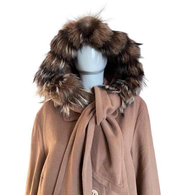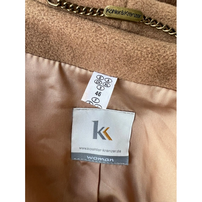 Koehler Krenzer long coat, very good condition . Size: DE46, UK20 80% wool, 20% Cashmire. Linning :60% acetate, 40% polyamide. Length 125cm, above armpits 60cm, sleeves 59cm, shoulders 48cm, waist 66cm, hips 75cm.