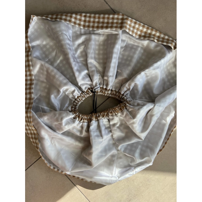 plain weave, frills, checked, high waisted, no pockets, elasticized waist, fully lined, small sized